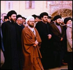 از راست: سید محمد حسینی شاهرودی، شهید سید محمدباقر حکیم، سید علیرضا حائری، ناصر مکارم شیرازی، ناشناس و سید محمود هاشمی شاهرودی