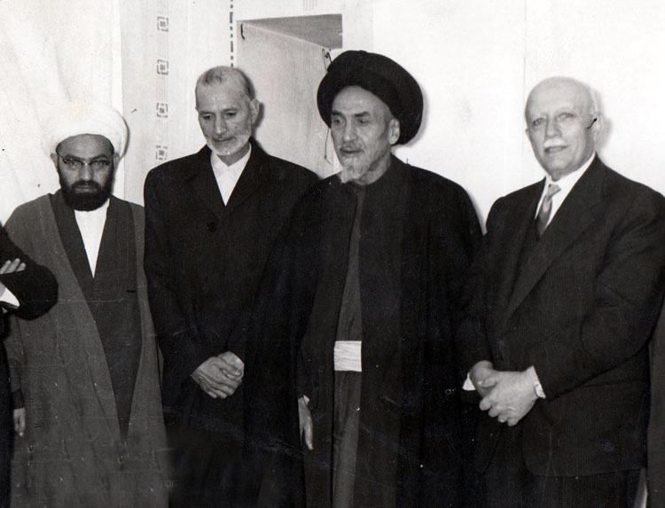 از راست: رشید بیضون، سید محمدهادی حسینی میلانی، محمدتقی شریعتی و محمد واعظ زاده خراسانی