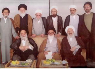 ایستاده از راست: سید مرتضی هاشمی، احمد ناصری دولت آبادی، مهدی مظاهری، محمد ناصری دولت آبادی، سید حسن فقیه امامی و سید عبدالحسین روضاتی - نشسته از راست: مهدی فقیه ایمانی، میر محمد صادقی و سید مرتضی مستجاب الدعواتی