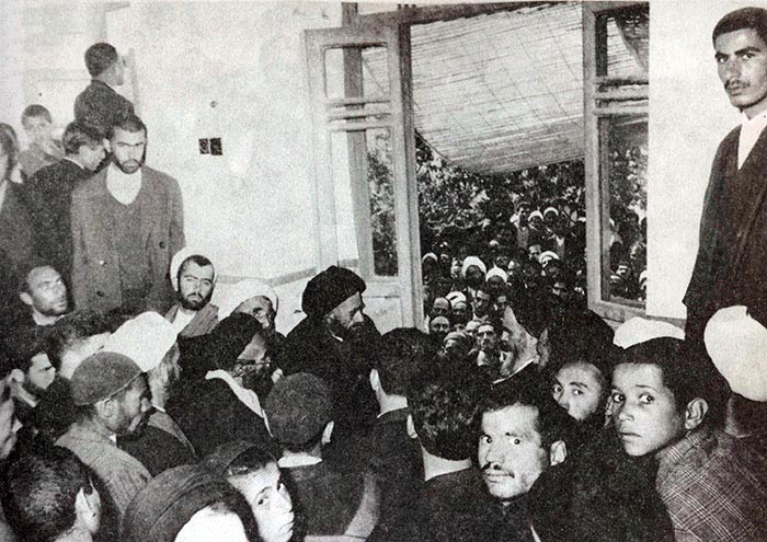 سید حسین موسوی خادمی در منزل سید روح الله موسوی مصطفوی خمینی در قم بعد از آزادی از زندان در سال 43