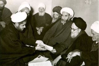 از راست: محمدجواد مغنیه، سید کاظم میرفیضی شریعتمداری، حسن تیلی تبریزی و آیت الله صفایی خوانساری